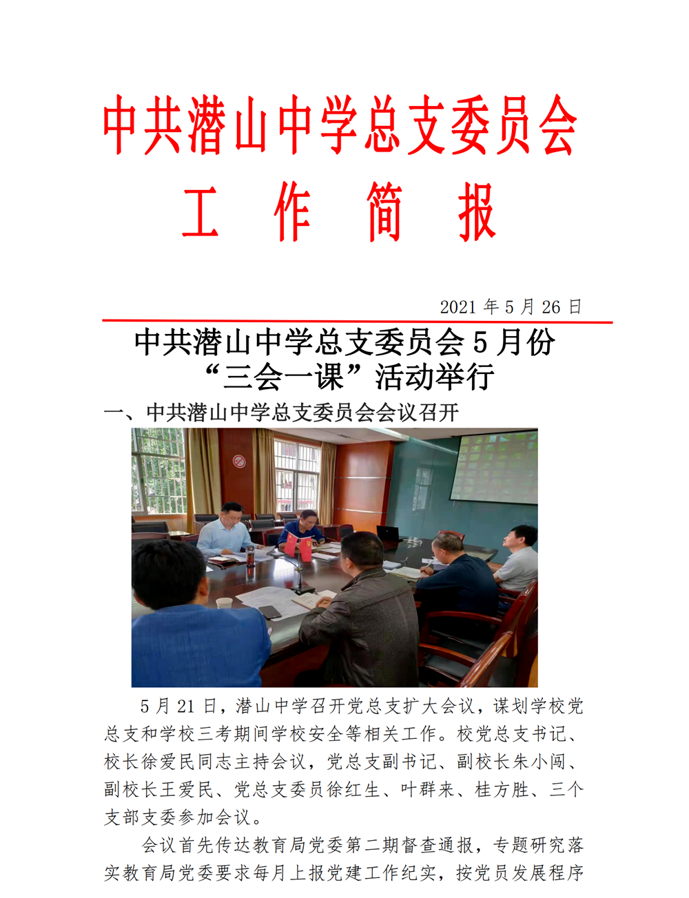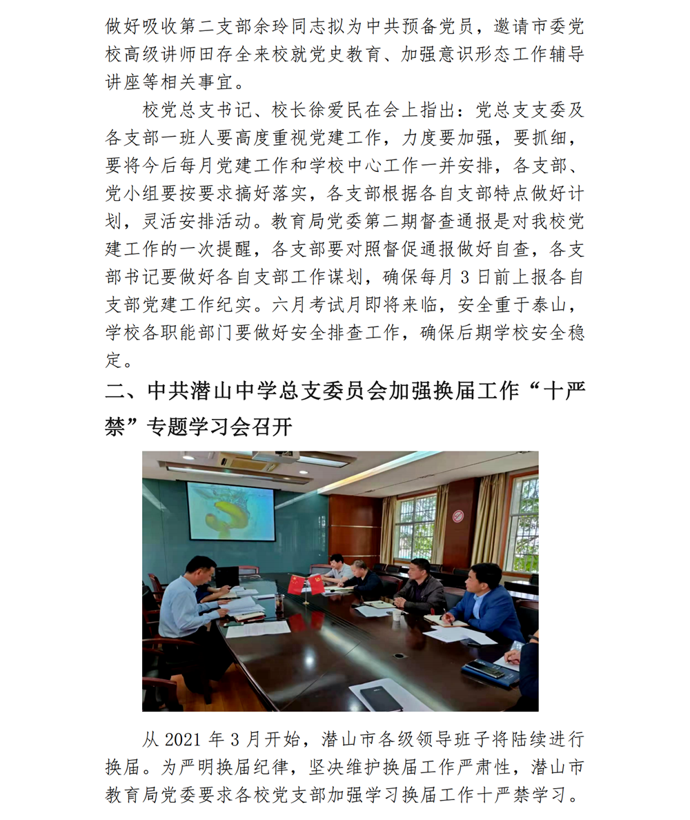 潜山中学党总支工作简报(2021年5月份)