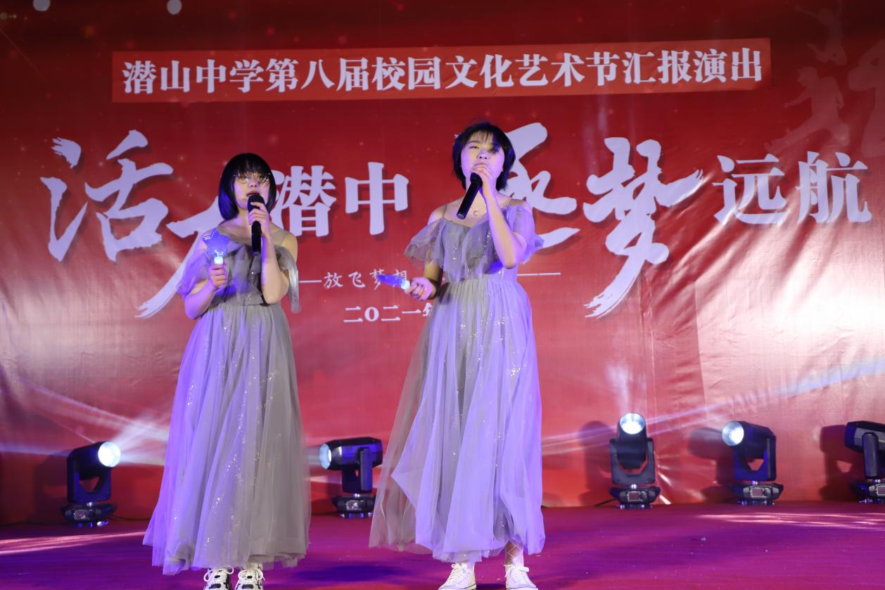 师生同乐,共奏和谐教育旋律。老师们登上舞台,各展才艺,绽放不一样的魅力与风姿!葛满玲老师精心创作的《潜阳逐光》,满含对家乡的钟情与热爱,林余杰、余玲老师的深情朗诵,声韵流转间将家国情怀植入人心。舞蹈《万疆》,舞台唯美,舞姿惊艳,女教师们以最美的姿态,祝愿潜中更创佳绩,祝愿祖国,万疆安泰!教师大合唱《灯火里的中国》《走向复兴》声势磅礴、气壮山河,两首歌曲,传递共同的信念:在璀璨灯火中,中国正走向复兴,创造辉煌!在一派祥和欢乐的氛围中,2021年潜山中学校园文化艺术节圆满落下帷幕!
