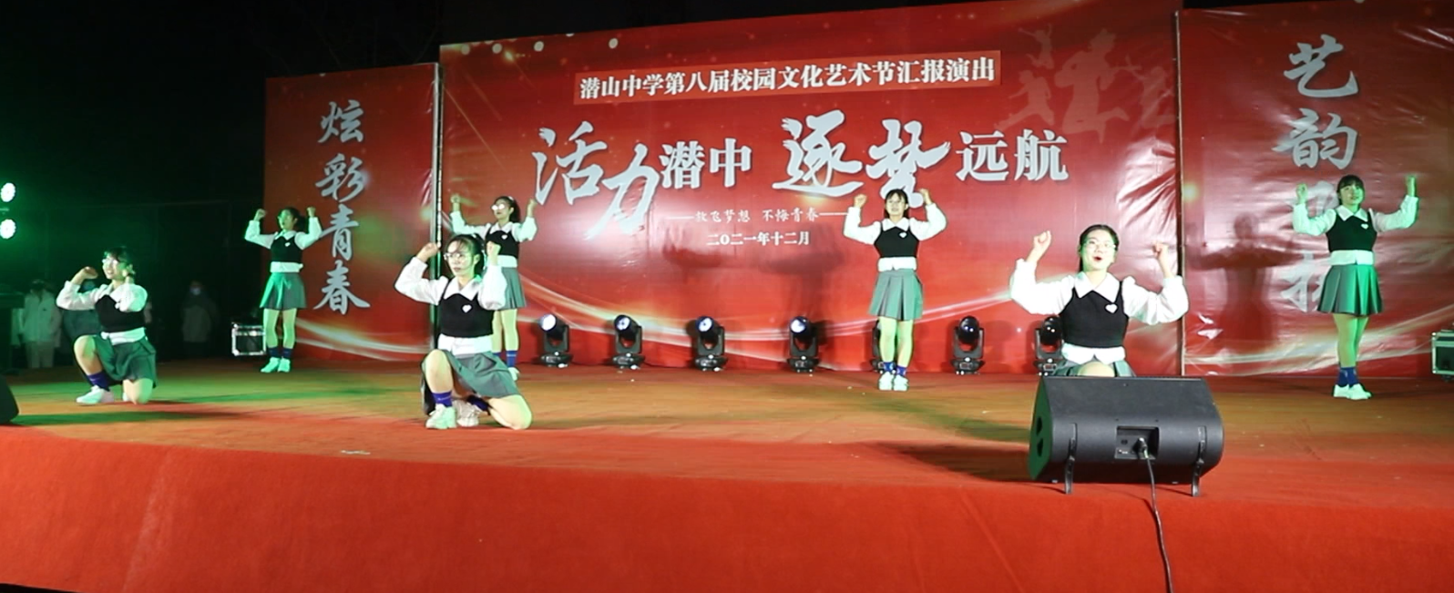 喜承良日同欢庆,便到冬寒亦是春。12月26日晚,潜山中学2021年第八届校园文化艺术节闭幕式暨文艺汇演在学校操场盛大开演。文艺汇演精选17个节目,师生同台献艺,校领导和全校师生共同观看了演出。