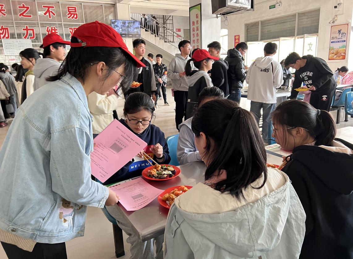 3月10日中午就餐时间,在团委老师的陪同下,高一年级志愿者在学校食堂进行志愿服务。志愿者们向食堂就餐同学发放节约倡议书,大力倡导勤俭节约,引导每位潜中学子成为反食品浪费的践行者、宣传者和示范者。