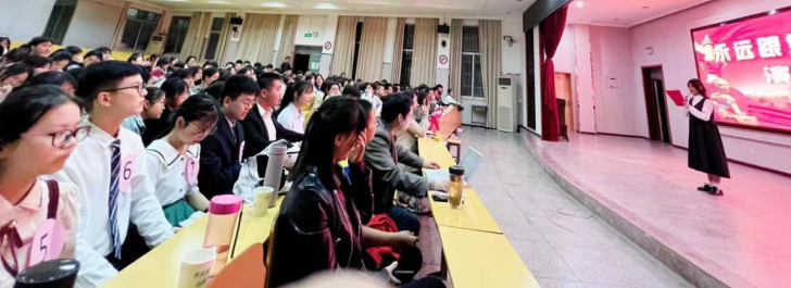 4月13日19点整,在经过一周的精心布置后,校团委在同一地点举办“永远跟党走 奋斗新征程”演讲比赛决赛。经过初赛选拔出的十名选手们精神饱满,斗志昂扬。台下认真准备,台上激情飞扬。或论百年沧桑进程,述党的风貌;或谈生活点滴变化,赞党的功绩。稚嫩的脸庞上,有新青年的家国情怀,有潜中人的担当意识。