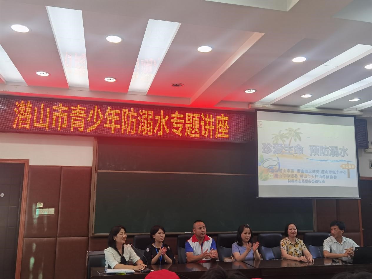 夏季是溺水事故高发期,为了增强学生的安全防范意识和自我保护能力,严防溺水事故发生,2022年7月1日,由团市委联合卫健委、潜山市红十字会,邀请潜山冬泳协会在我校多媒体教室举办防溺水专题讲座。