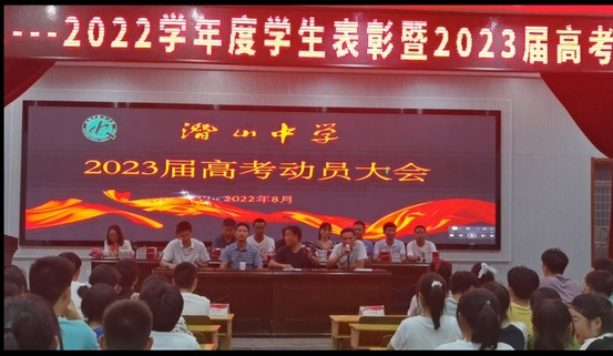8月20日晚,潜山中学高三年级部在逸夫楼报告厅举行2023届高考动员暨表彰大会。高三年级部主任叶群来和副主任桂方胜、汪节圣及高三全体班主任出席大会,高三全体学生参加大会。大会由党总支副书记张永生主持。