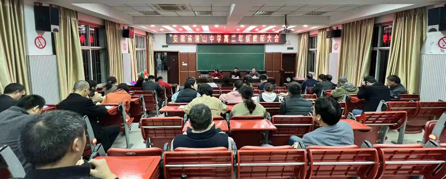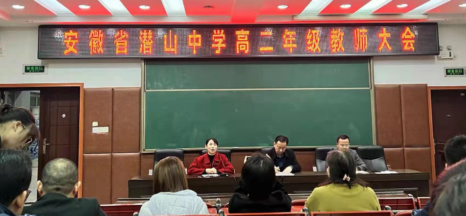 11月28日,潜山中学在政通楼报告厅召开高二全体教师大会。校长徐爱民、副校长徐舒曼参加会议。会议由徐舒曼副校长主持。