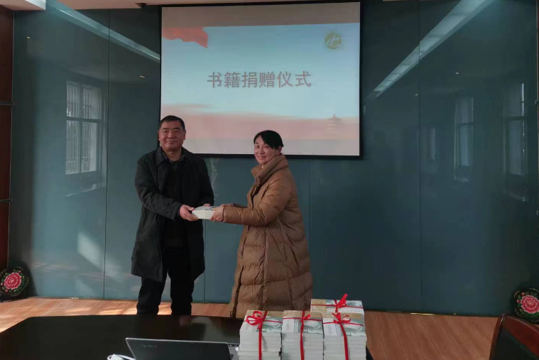 会上还进行了书籍捐赠仪式,由黄明媚女士出资,向我校捐赠王张应先生创作的图书80余册。