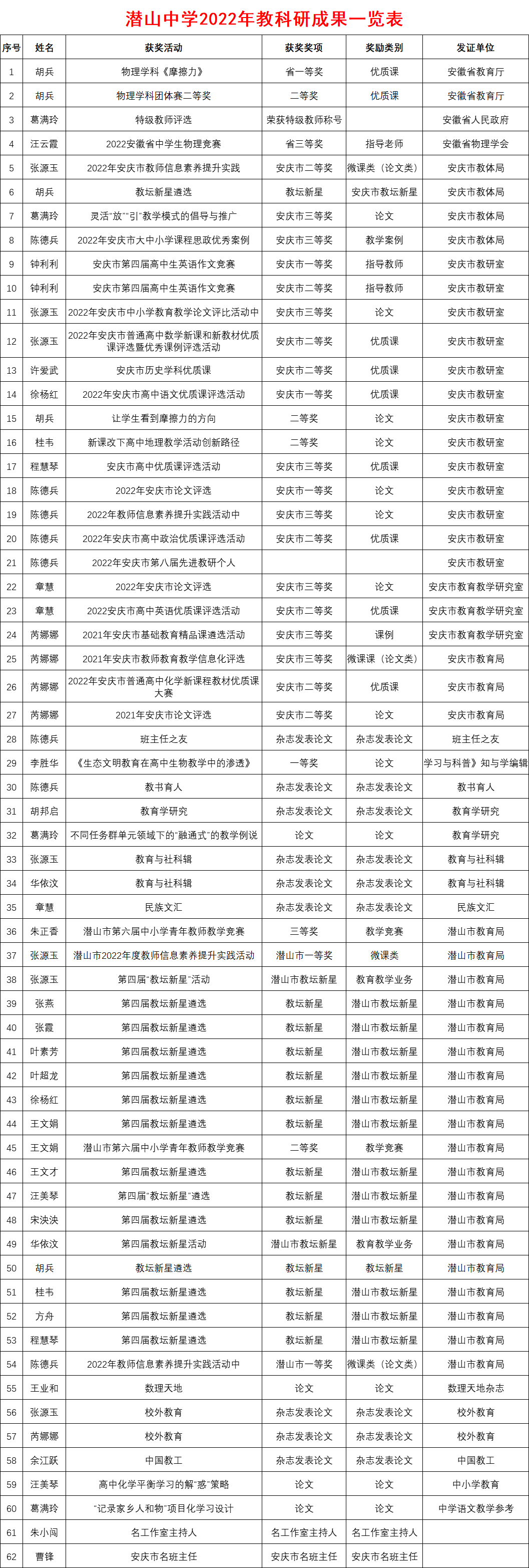 2022年教科研成果一览表