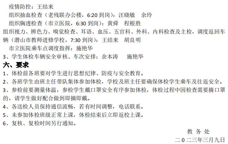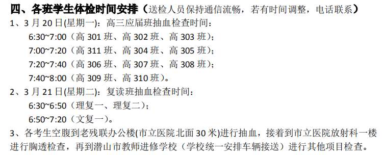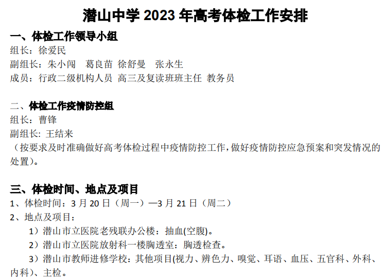 2023年高考体检工作安排