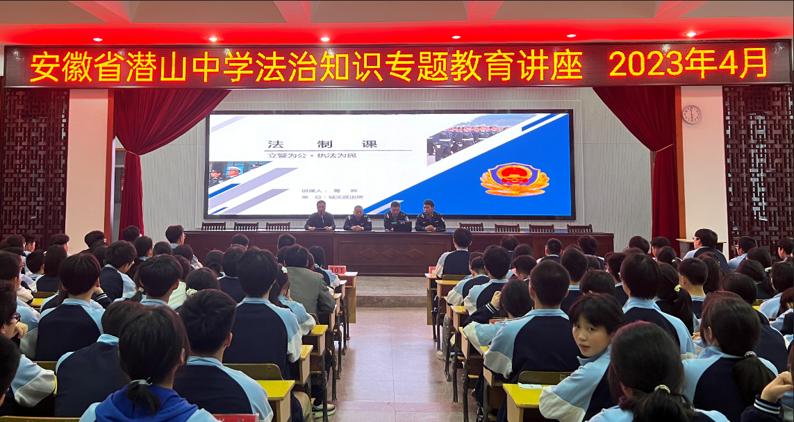 为进一步增强学生法治观念及自我保护意识,强化校园安全管理,营造良好的平安校园环境,4月16日晚,城关派出所副所长、潜山中学法治副校长葛晔在我校多媒体报告厅举行法治知识专题讲座。