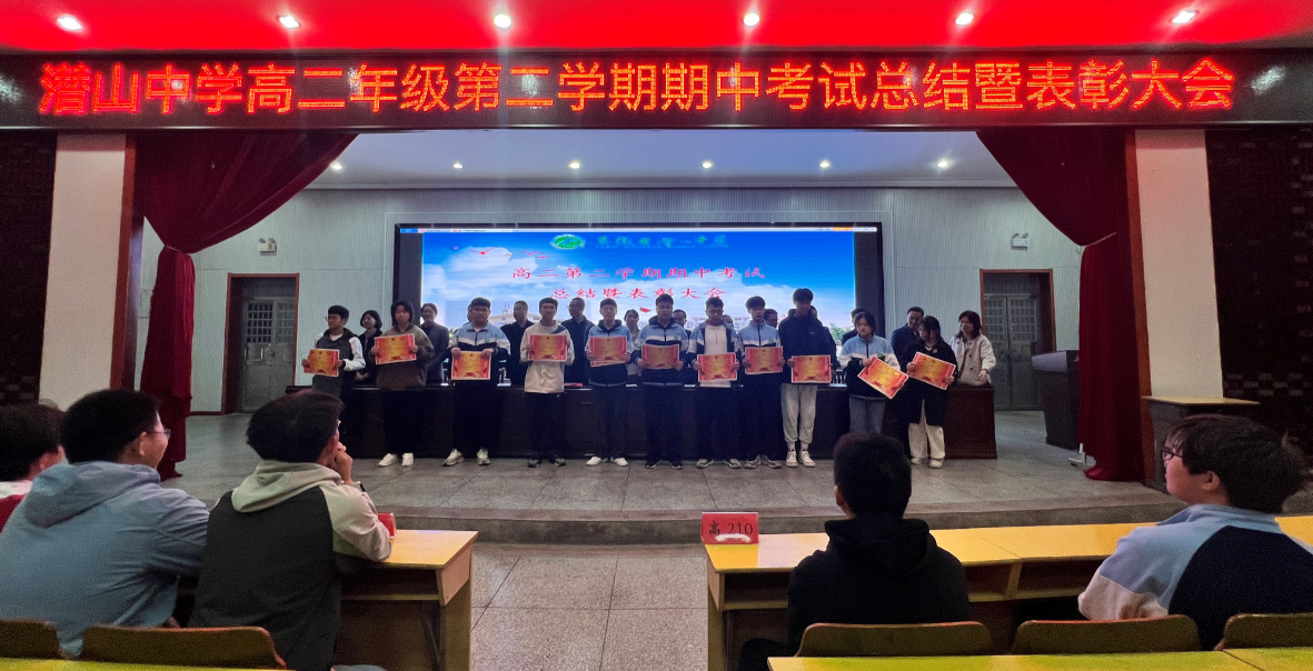 为帮助同学们更好分析考试得失,迎接下一阶段的挑战,激发创新争优的意识,4月22日晚,我校在大多媒体教室隆重举行了高二年级第二学期期中考试总结暨表彰大会。副校长徐舒曼,高二年级部主任林余杰、副主任余龙胜,高二全体班主任及学生参加会议。会议由林余杰主持。 余龙胜宣读受表彰学生名单。伴随着热烈的掌声和激昂的音乐,各班班长依次走上领奖台,从班主任手中接过奖状并合影留念。 优秀学生代表吴振华发言,从树立坚定目标、保持恒久动力、与老师建立良好关系、端正考试心态四个方面分享了自己的学习心得。优秀班主任代表杨张根老师从班级管理、教师教学、学生学习三个方面作了经验交流。 徐舒曼在总结讲话中肯定了同学们的努力和进步,也指出学生学习中存在的问题,并从目标决定人生、责任大于兴趣、方法决定结果三个方面提出建议,坚信在接下来的高中岁月里,高二年级全体师生定会奋力拼搏,一路风雨,一路豪情! (文字/朱正香 图片/林余杰 审核/徐爱民)