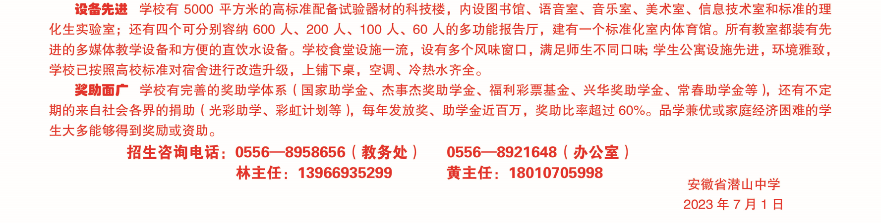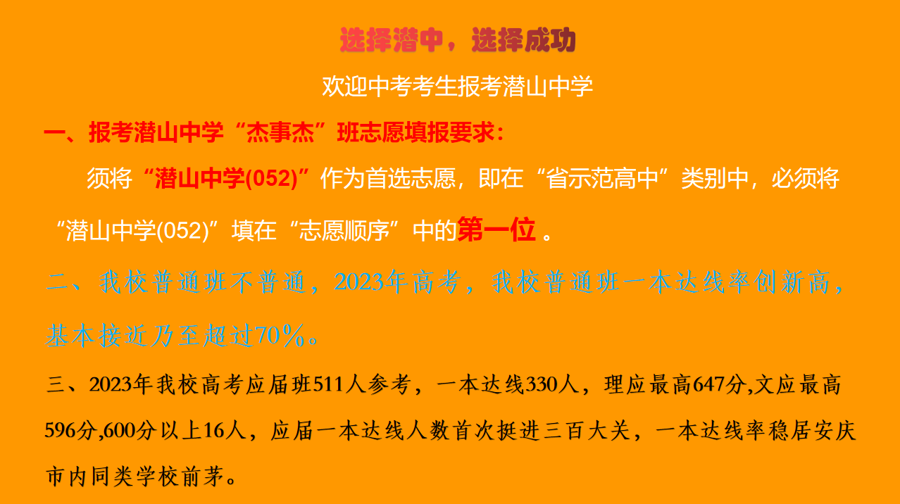 2023年潜山中学高一新生招生简章