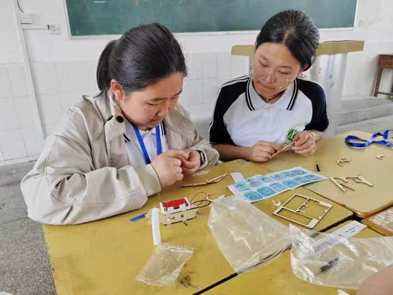 计算机社团制作“飞翔的小鸟”游戏程序,通过学习该游戏程序的数值运算和逻辑运算,学生可加深对编程语句的了解并初步掌握游戏编程的方法。化学社团带领学生制作简易净水器,同学们充分发挥想象力与创造力,学会了一些净水方法,在化学实验创新能力得到锻炼的同时认识到干净的水来之不易。生物社团进行模拟性状分离实验,同学们通过自己动手探究,认识和理解遗传因子的分离和配子的随机结合与性状之间的数量关系,并能够利用建模思维使实验数据更清晰直观,由此培养建模能力。物理社团开展“机械狗”活动,学生分小组制作机械狗模型,在此过程中学会探究、学会合作。地理社团学习“制作日晷”,学生不仅了解了日晷的工作原理,而且感知时间是会慢慢地流逝,纷纷表示要追逐光阴的脚步勤奋学习,珍惜青春时光。