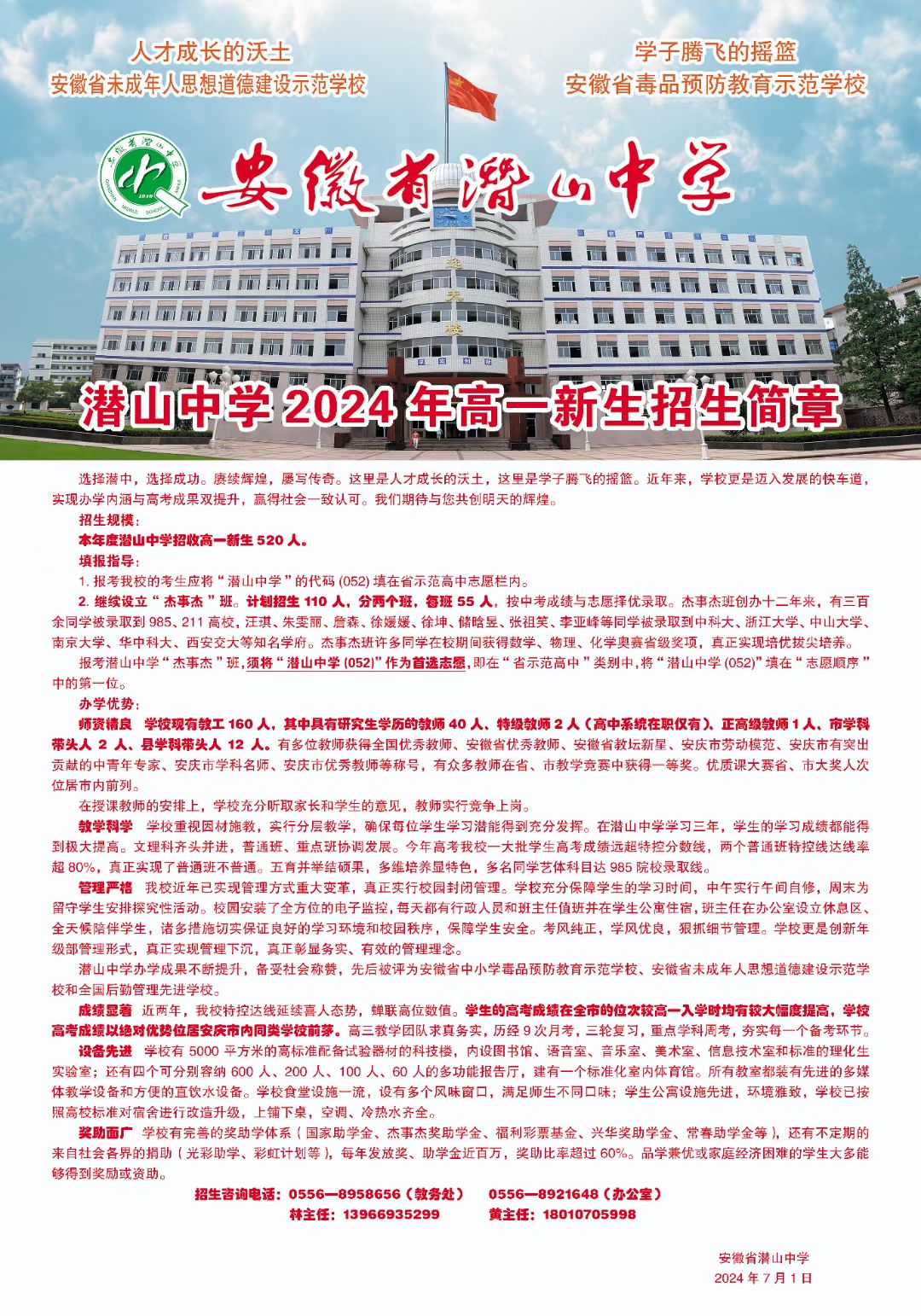 潜山中学2024年高一新生招生简章