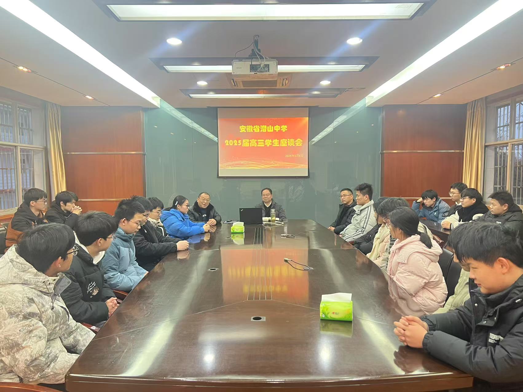 1月6日,我校召开高三学生座谈会。朱春生校长出席会议并讲话,党总支副书记叶群来、年级部副主任曹锋,高三学生代表参加会议。会议由年级部主任汪晓敏主持。