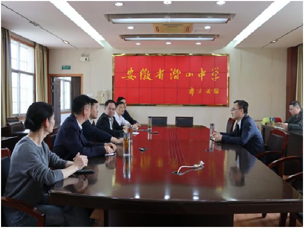 江凯一行来到校园,首先察看了校容校貌,了解了潜山中学百年办学历程和发展现状,随后与学校党政班子进行了座谈。