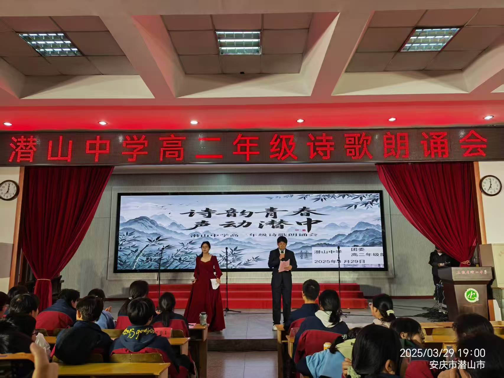 为传承中华优秀传统文化,提升学生文化素养与文学鉴赏能力,营造浓厚校园文化氛围,3月29日晚,潜山中学团委携手高二年级部,成功举办“诗韵青春,声动潜中”主题诗歌朗诵比赛。