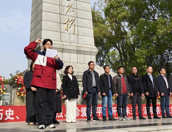 随后,徐爱民致辞,回顾革命先辈的英勇事迹,号召师生以英烈精神为指引,砥砺前行。党总支副书记孙继业带领全体党员重温入党誓词。高一年级学生集体宣誓:“继承先烈遗志,争做时代新人”。最后,师生绕行纪念碑一周,瞻仰碑文,感悟革命精神的永恒力量。