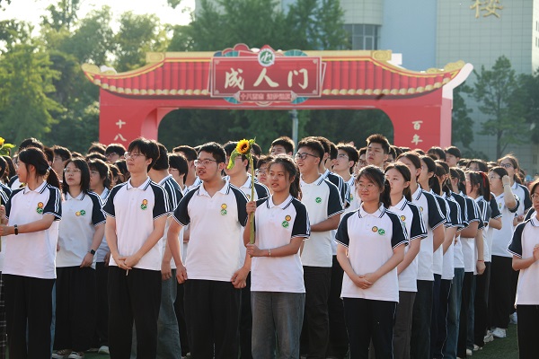 6点45分,在激昂音乐中,精神抖擞的高三学子踏上红毯,依次穿过逸夫楼与逸伦楼,昂首跨越庄严的“成人门”。校领导和高三班主任分列两侧与学生依次击掌加油,掌声与目光汇成暖流,为青春注入责任的力量。