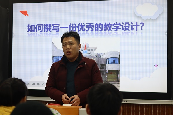 首先,徐杨红老师和王文才老师结合自身丰富的教学与管理经验,分别围绕“教学语言与仪态”、“教学设计撰写”等维度,细致拆解了“备课、上课、作业、评价、教研”五大核心环节的实施要点,深入剖析日常课堂教学的实操策略。青年教师们全神贯注地聆听讲座,收获颇丰。