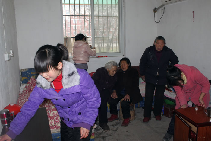 潜山中学组织学生志愿者在“夕阳红”敬老院开展了以“敬老、爱老”为主题的服务活动,48名学生志愿者来到敬老院给老人们送去了慰问品,为老人们端茶递水,陪老人们聊天,帮助老人们整理内务,打扫敬老院环境卫生。