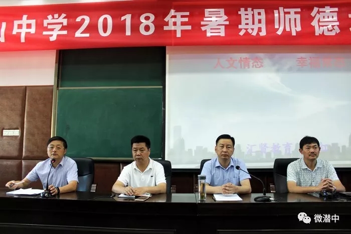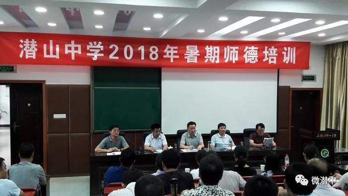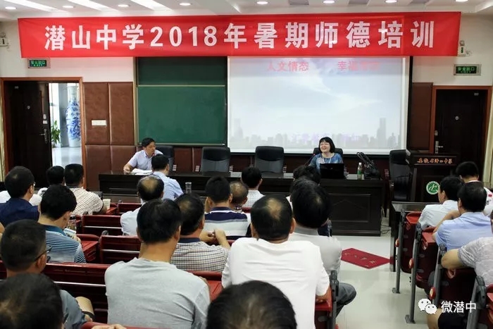 为规范教师的教育教学行为,提高教师的师德师风水平,潜山中学于2018年8月24日—25日在学校多功能厅,对全体在岗教职员工开展了为期两天主题为“提素养、强师德、树形象”的师德培训,培训会由王爱民副校长主持。