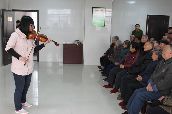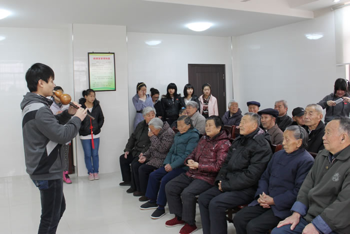 潜山中学青年志愿者在校团委的组织下前往天柱山敬老院进行慰问活动。同学们为老人们送上了舞蹈、独唱、合唱、乐器联奏、黄梅戏表演等十余个丰富多彩的文艺节目,老人们都非常开心地欣赏了同学们精心准备的节目。