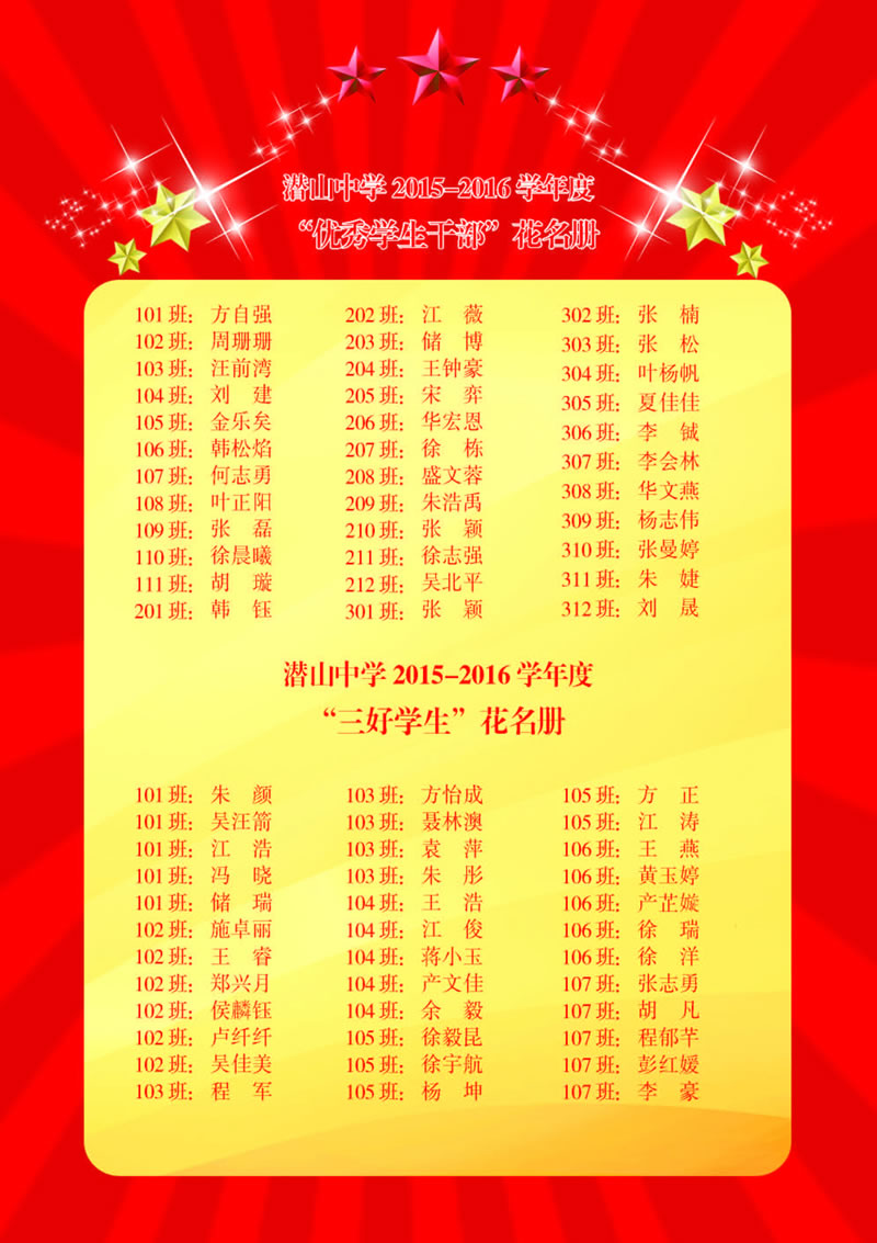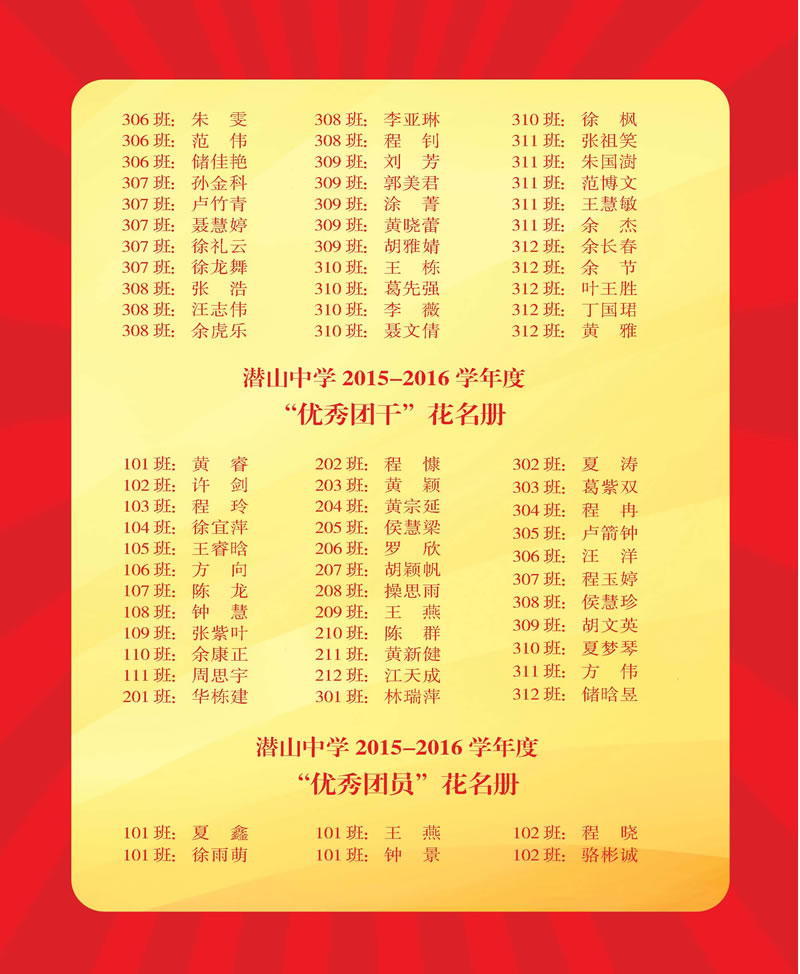 潜山中学2015—2016学年度学生光荣册