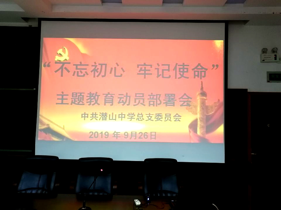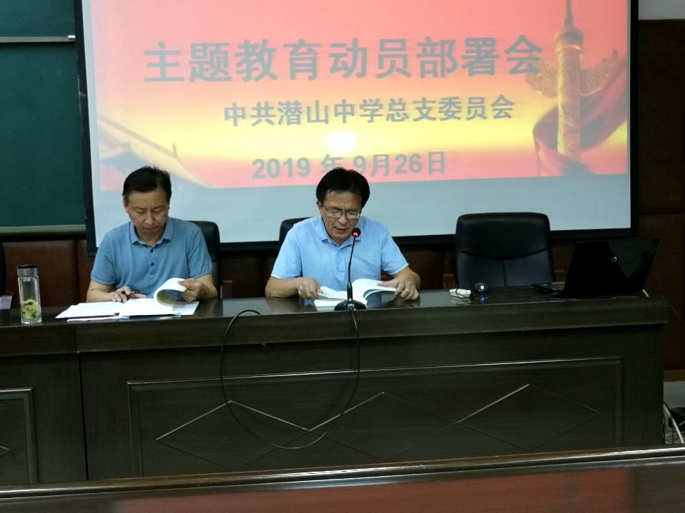 总支组织委员朱小闯宣读了《潜山中学党总支关于开展“不忘初心、牢记使命”主题教育实施方案》,方案结合我校实际,对主题教育工作进行了部署和安排。