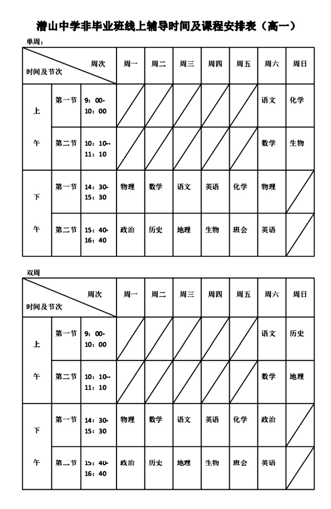 潜山中学2019—2020年第二学期高三作息时间、线上教学、早晚自习安排