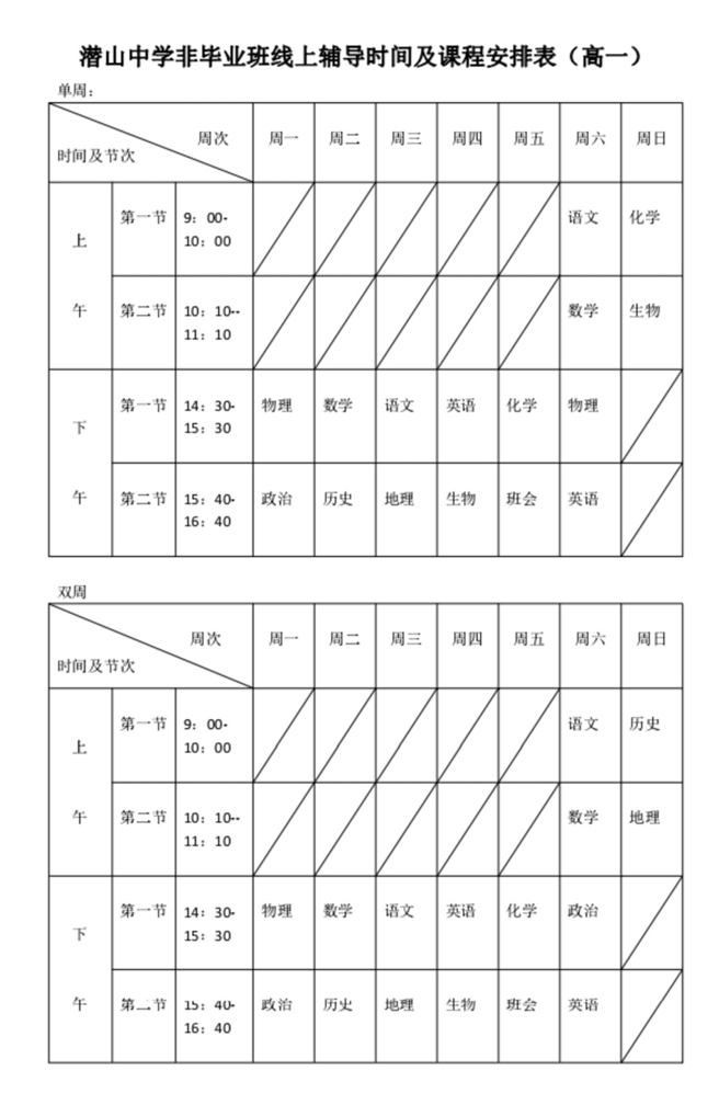 作息时间、线上教学早晚自习安排