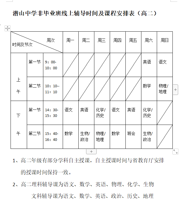 附5、非毕业班线上辅导时间及课程安排