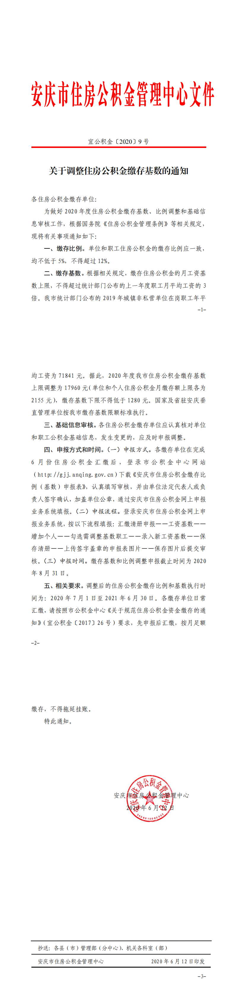 关于调整住房公积金缴存基数的通知