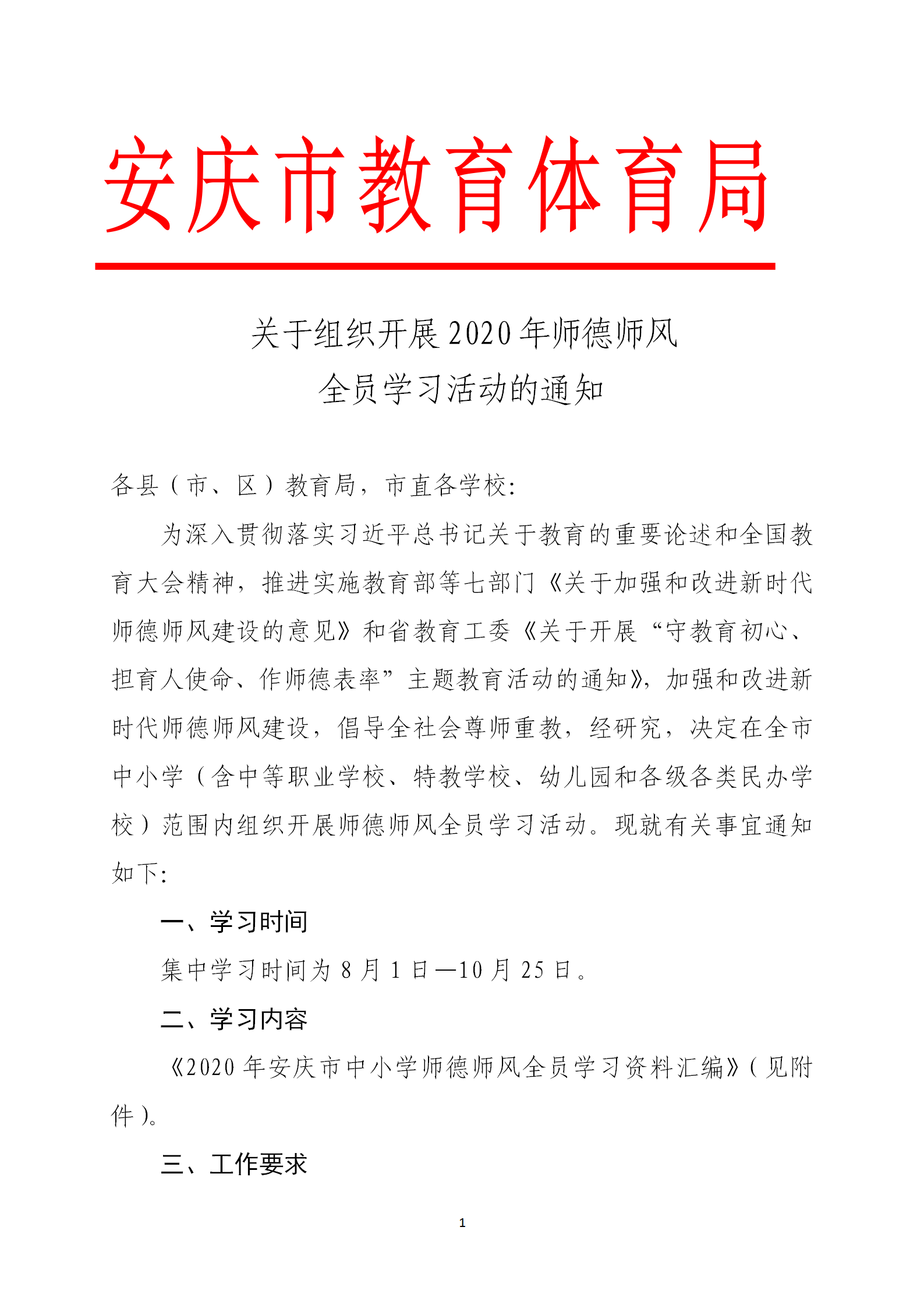 关于组织开展2020年师德师风全员学习活动的通知