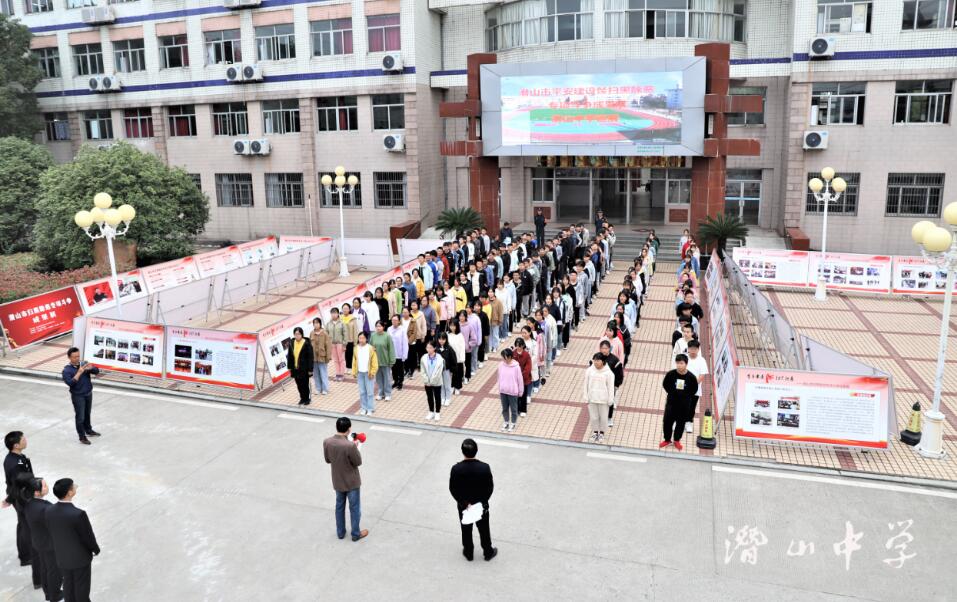 10月20日,“潜山市平安建设暨扫黑除恶专项斗争成果教育系统巡展”潜山中学专场巡展成功举行。市扫黑办、检察院、法院、公安局派员参加潜山中学专场巡展启动仪式。