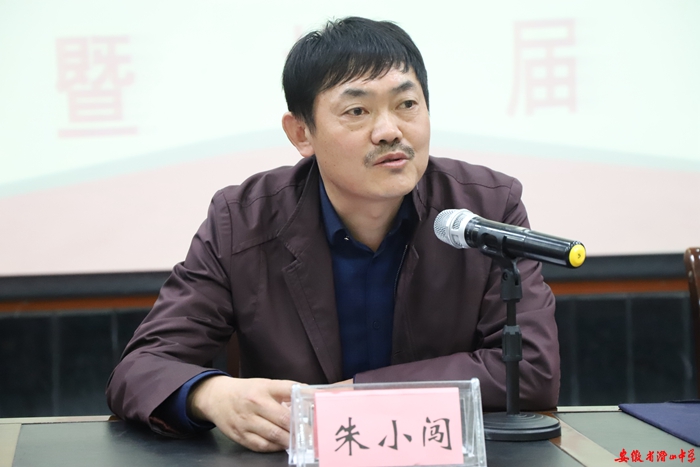 朱小闯代表学校讲话,肯定了上一届学生会的工作,对新一届学生会提出几点要求,希望新一届学生会尽快转变角色,树立服务意识,发挥桥梁纽带作用,与此同时,要在学习上更加努力,实现学习、工作两不误。