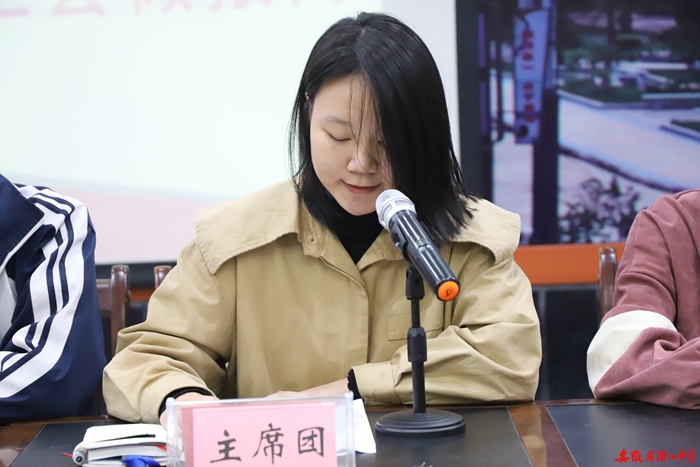 余玲介绍了学生会换届筹备工作。本届学生会换届,坚持公开公平公正的原则,成立了筹委会,采取线上线下结合的方式,通过一周多的激烈选拔,共选出82名学生进入本届学生会。