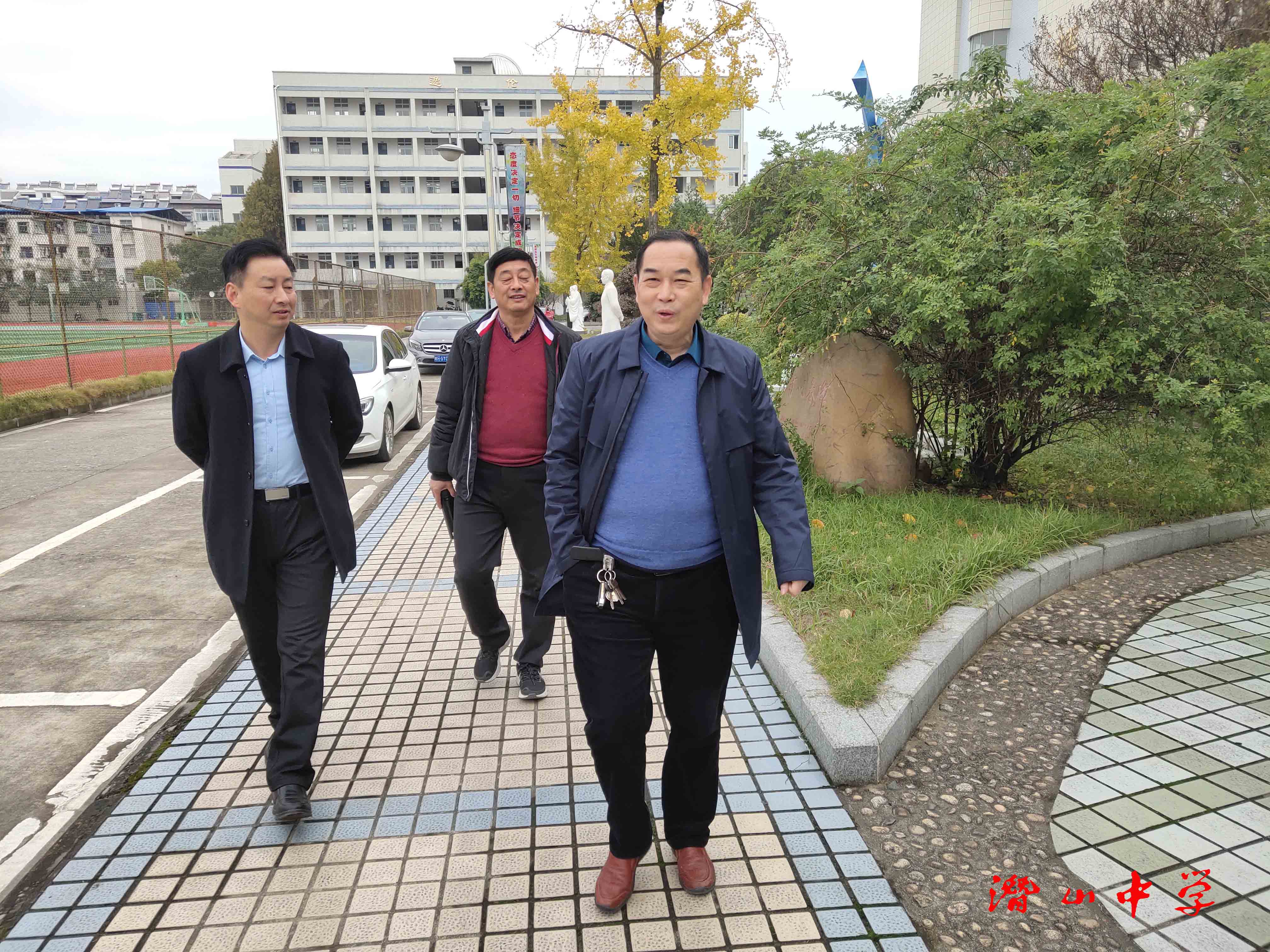 11月27日,潜山市教育局党委书记、局长石敬忠来潜山中学检查指导工作,项目办主任黄圣华陪同。