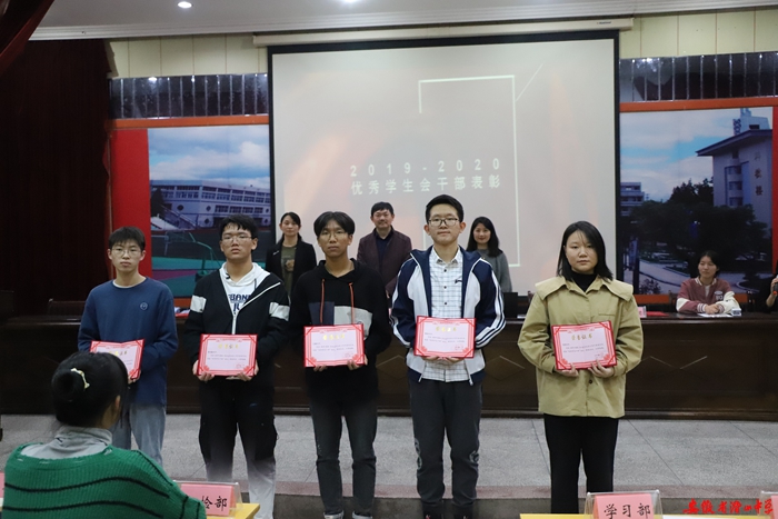 大会表彰了2019—2020年学生会优秀学生干部,程灿、马恬获“潜山市优秀团干”称号,黄刘毅、田鑫、王睿获“潜山中学优秀学生干部”称号。