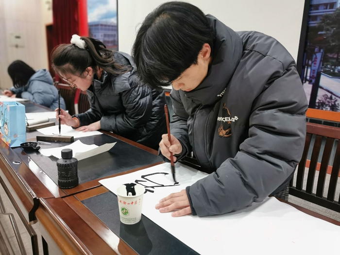 本次比赛分为班级初赛、现场书写决赛两个环节。经过各班选拔,共42名选手参加现场书写比赛,其中3名选手现场进行软笔书法作品展示。孙志坚、江涛、葛良义老师担任评委,评选出一等奖4名、二等奖6名、三等奖10名及优秀班级奖。