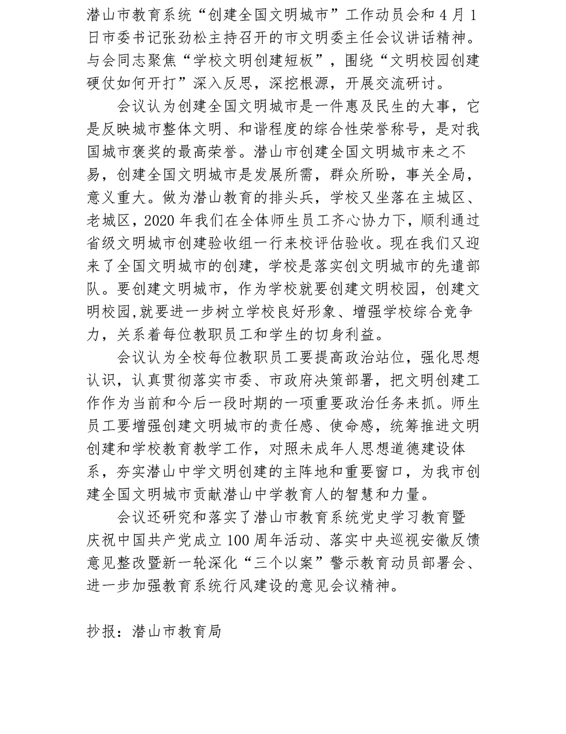 潜山中学文明校园创建工作简报(四)